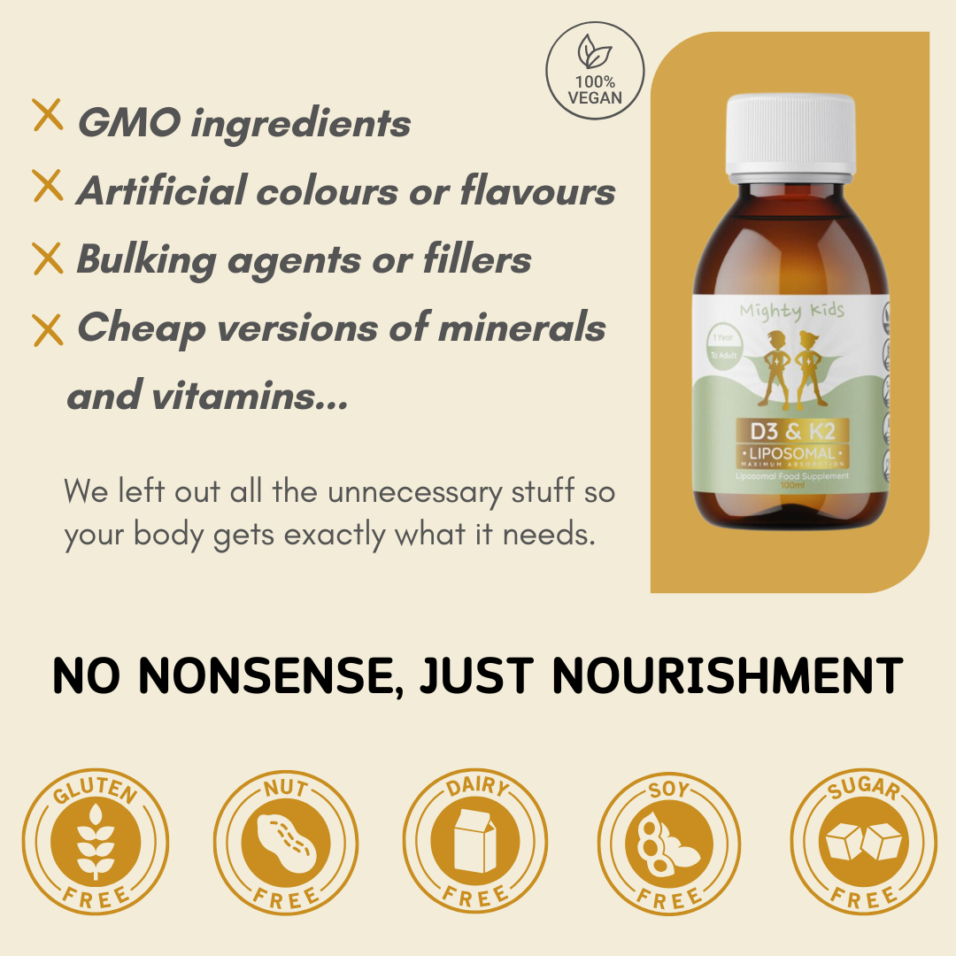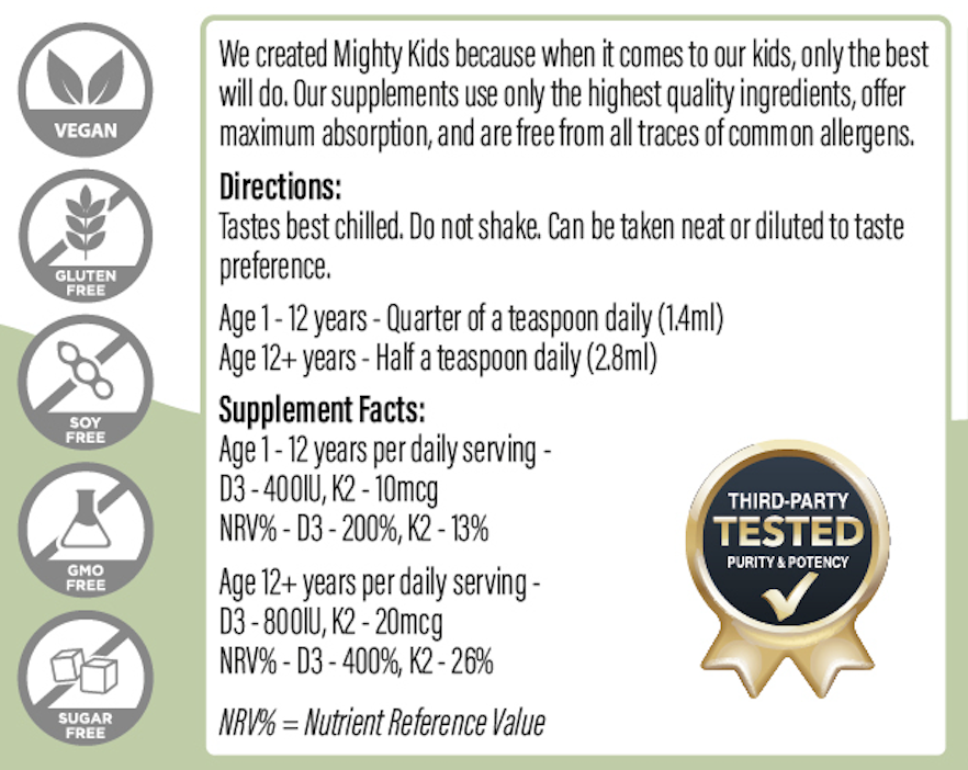 Mighty Kids was the first UK company to create liposomal supplements for kids and so as industry leaders, we wanted to exercise caution and start with a very conservative age limit. We have since received guidance from our team of scientists and nutritionists that our dosage on all our products in the kids line is safe from 12 months- with parental discretion. Parents need to ensure a child is not already on a prescribed infant formula, specially fortified milk, or other supplements that contain high amounts of these ingredients. Please check labels for these amounts. We previously decided that we were most comfortable keeping the labels as they were to allow for direct communication with parents to explain the above and to ensure absolute safety for those who may not reach out to us beforehand to discuss this. However, with over a year of education provided to our customers, we are now in the process of updating our labels to reflect the current guidance and this will happen in the next production batch.